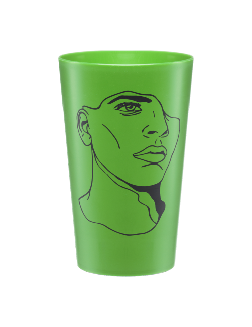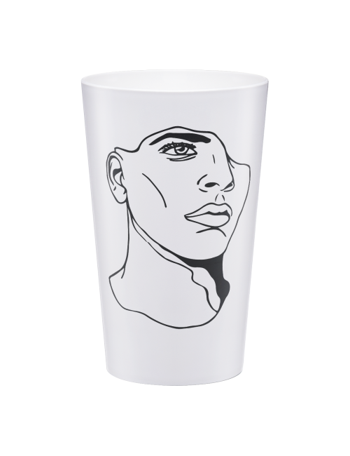 60 cl reusable cup, made of hard plastic. Perfect to serve a pint or half a pint of beer in pubs and major events with all the potential of four-color printing, with no limit of colors.