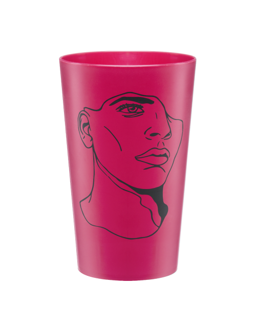 33 cl reusable cup, our star glass with all the potential of four-color printing, with no limit of colors. The solution for few quantities in four-color printing!
